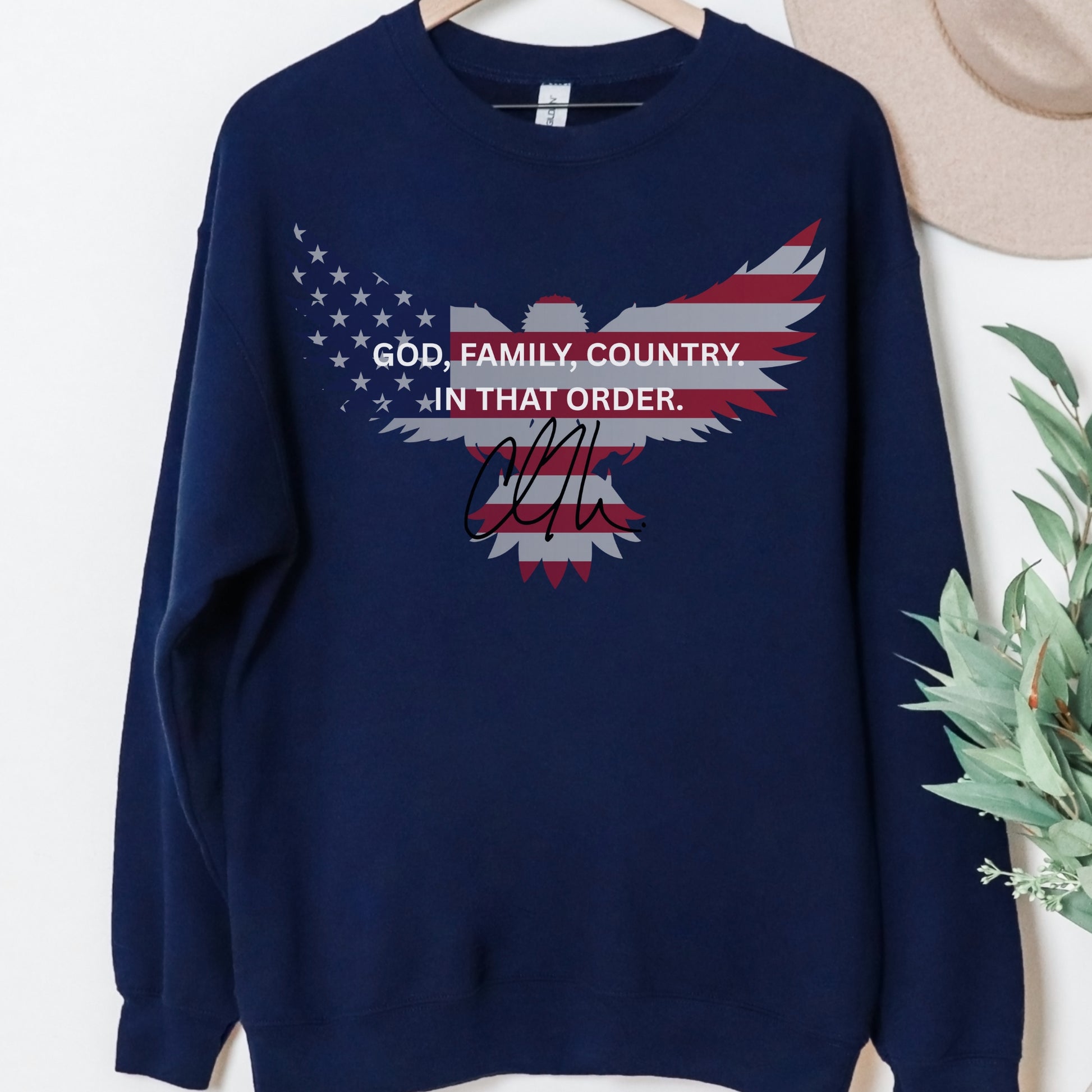 God, Family, Country Sweatshirt – Stand Strong: Charlie Kirk Collection