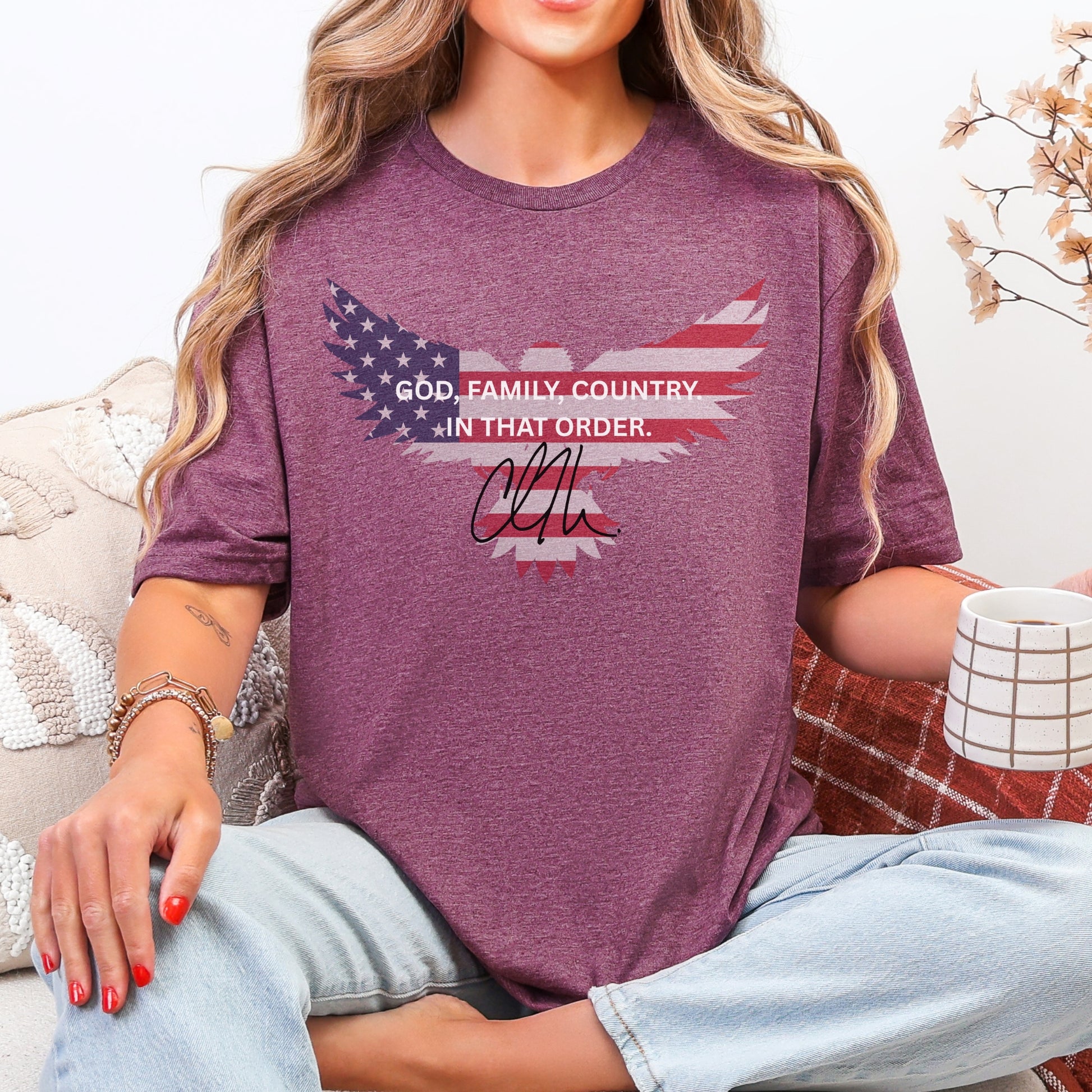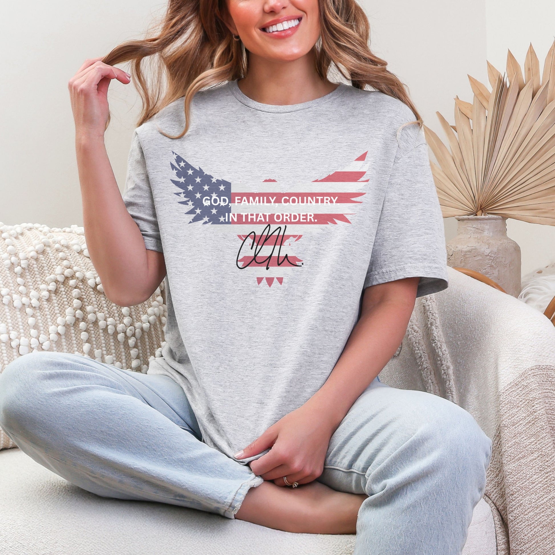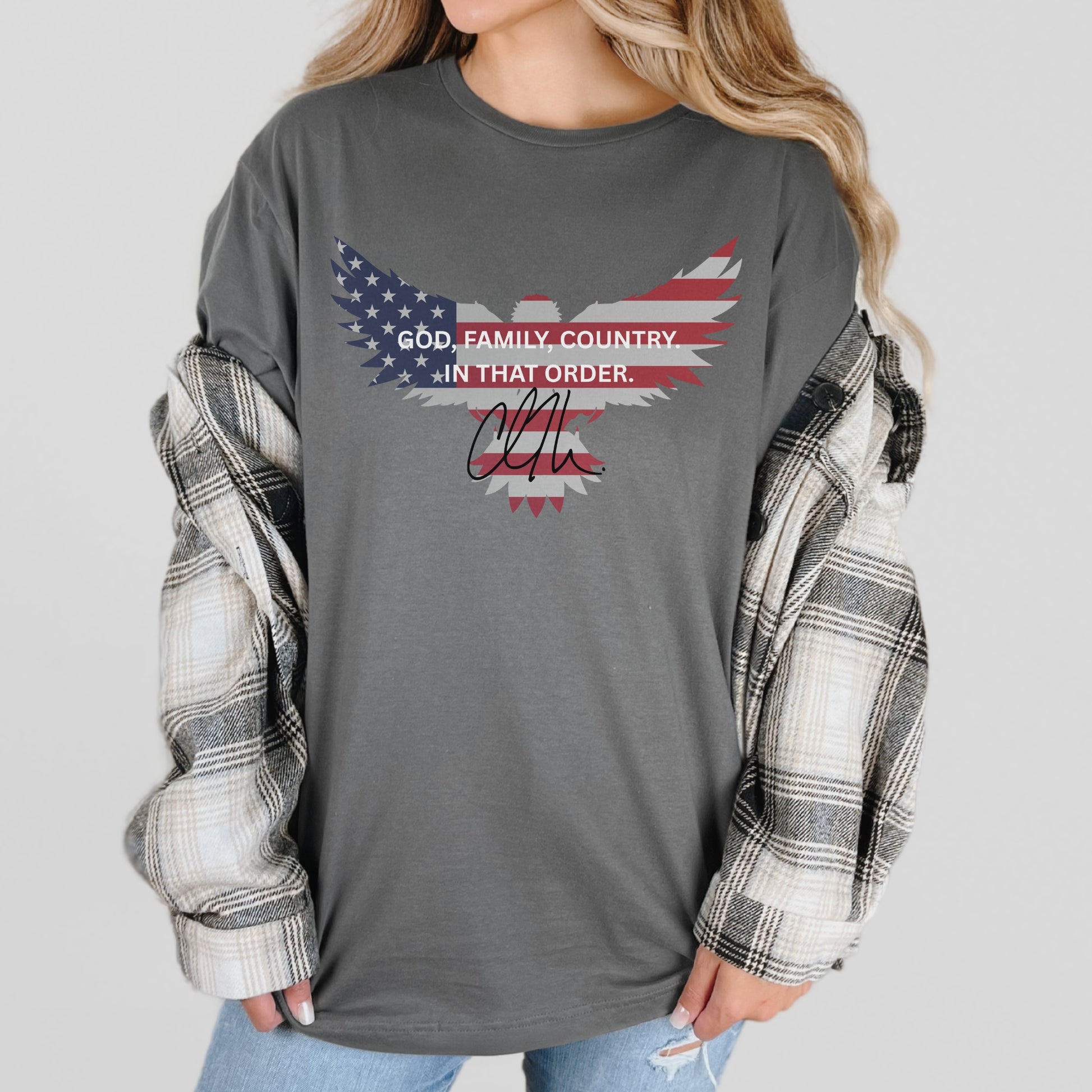 God, Family, Country Tee – Stand Strong: Charlie Kirk Collection