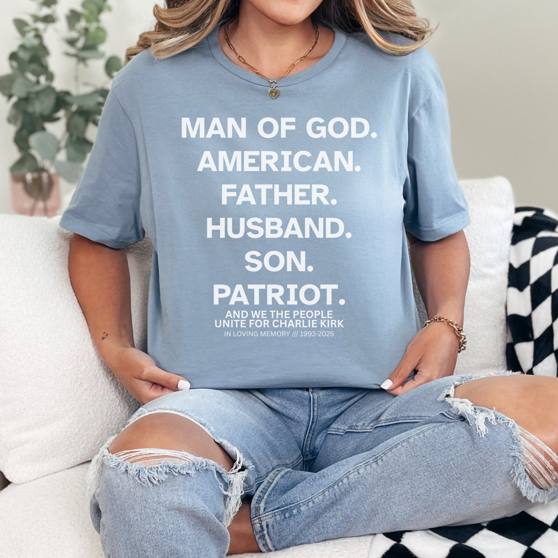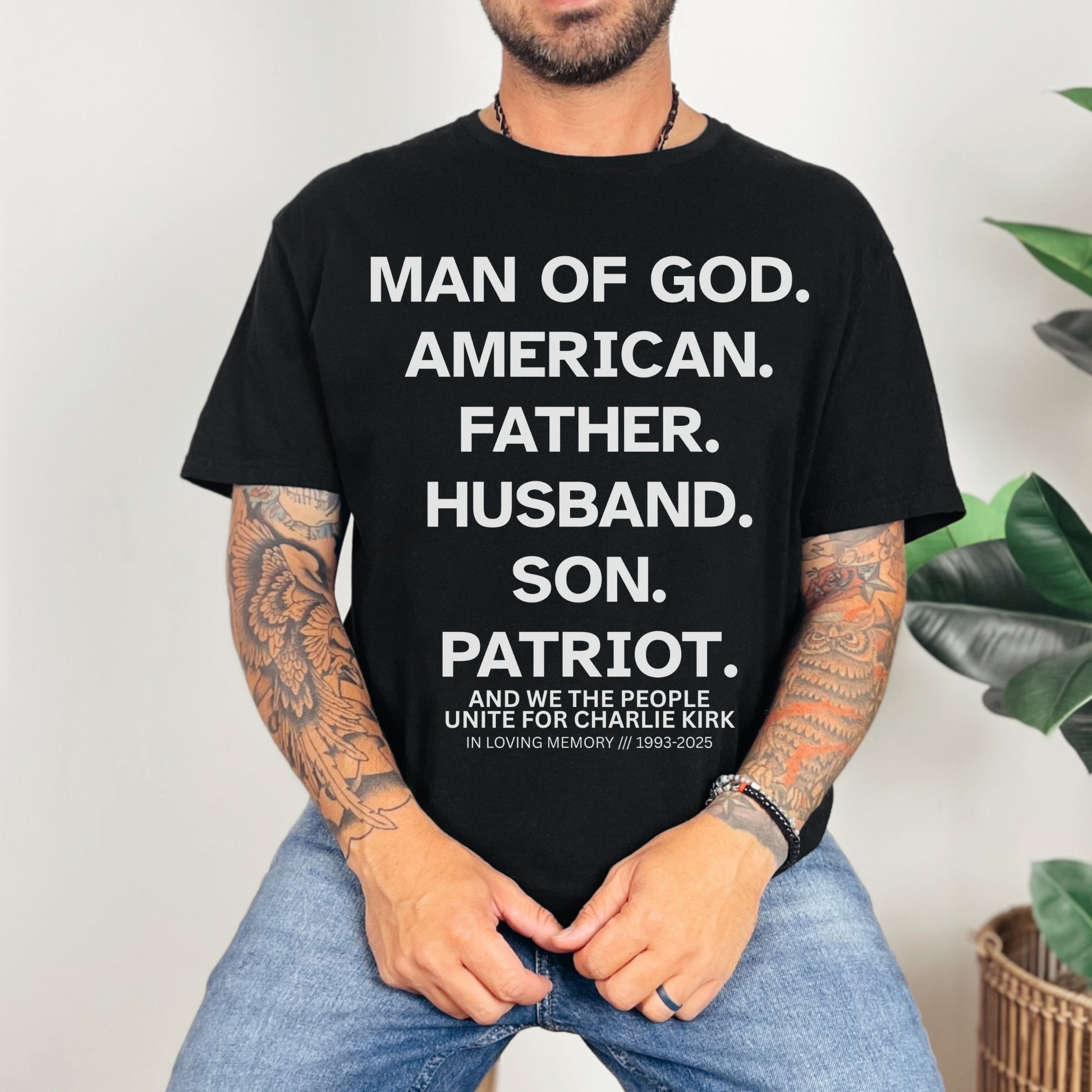 Man of God. American. Father. Husband. Son. Patriot. These words don’t just describe a life — they honor a legacy. The Legacy Tee was created in remembrance of Charlie Kirk, celebrating the roles he lived out with conviction and the values he stood for until the very end.