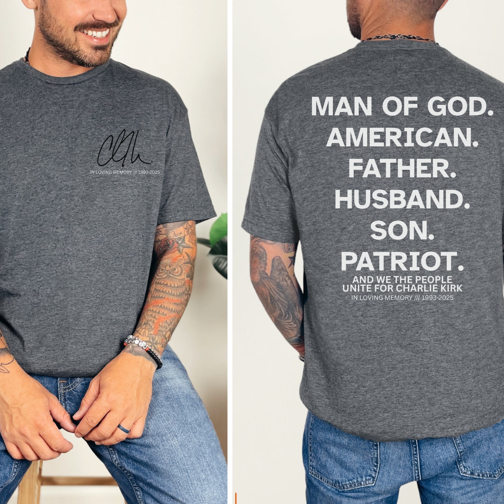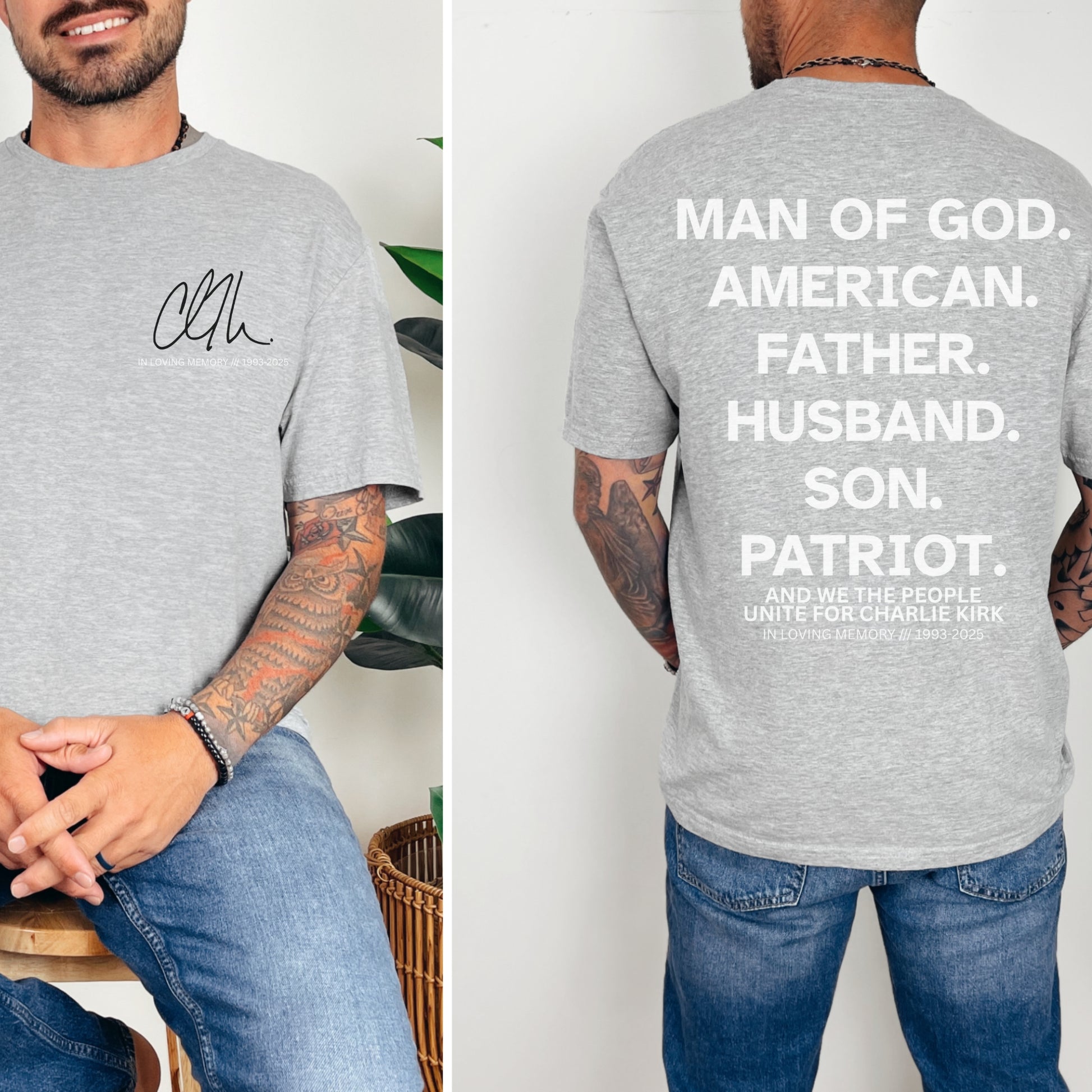 “Man of God. American. Father. Husband. Son. Patriot.” Memorial T-Shirt | Patriot Collection