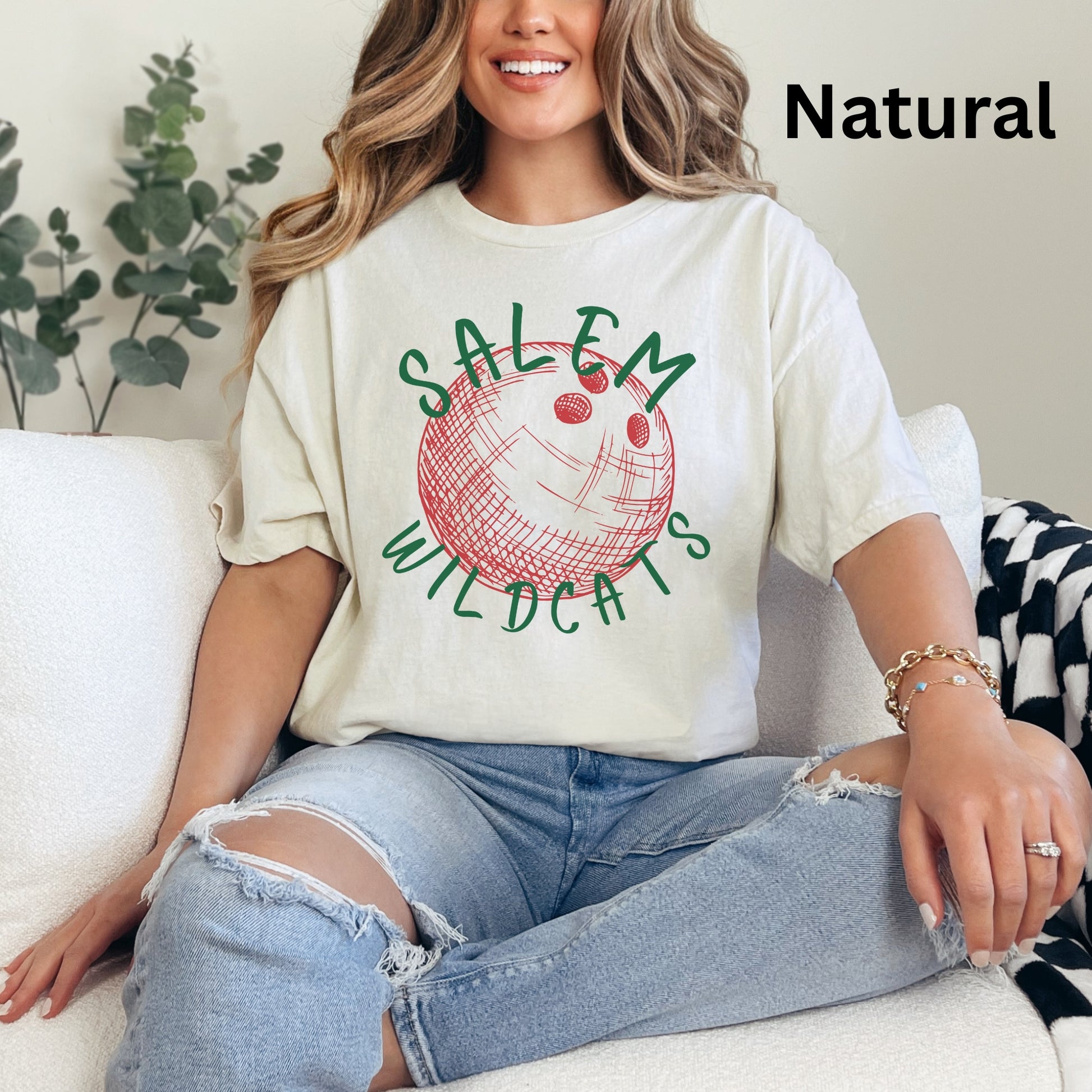 Salem Wildcats Bowling Tee | Vintage Sketch Bowling Ball Team Shirt