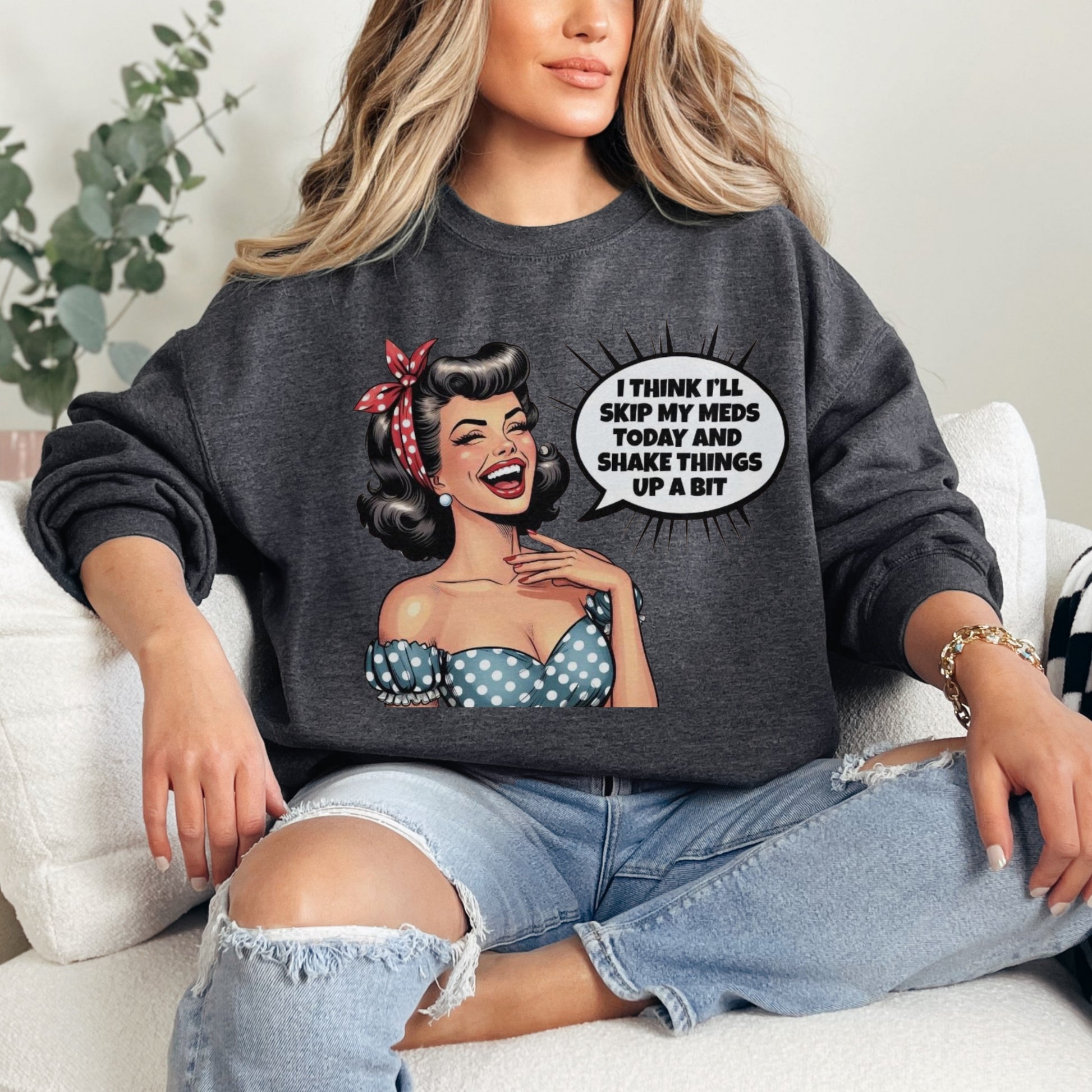 Skip My Meds Sweatshirt | Funny Retro Pop Art Graphic Crewneck