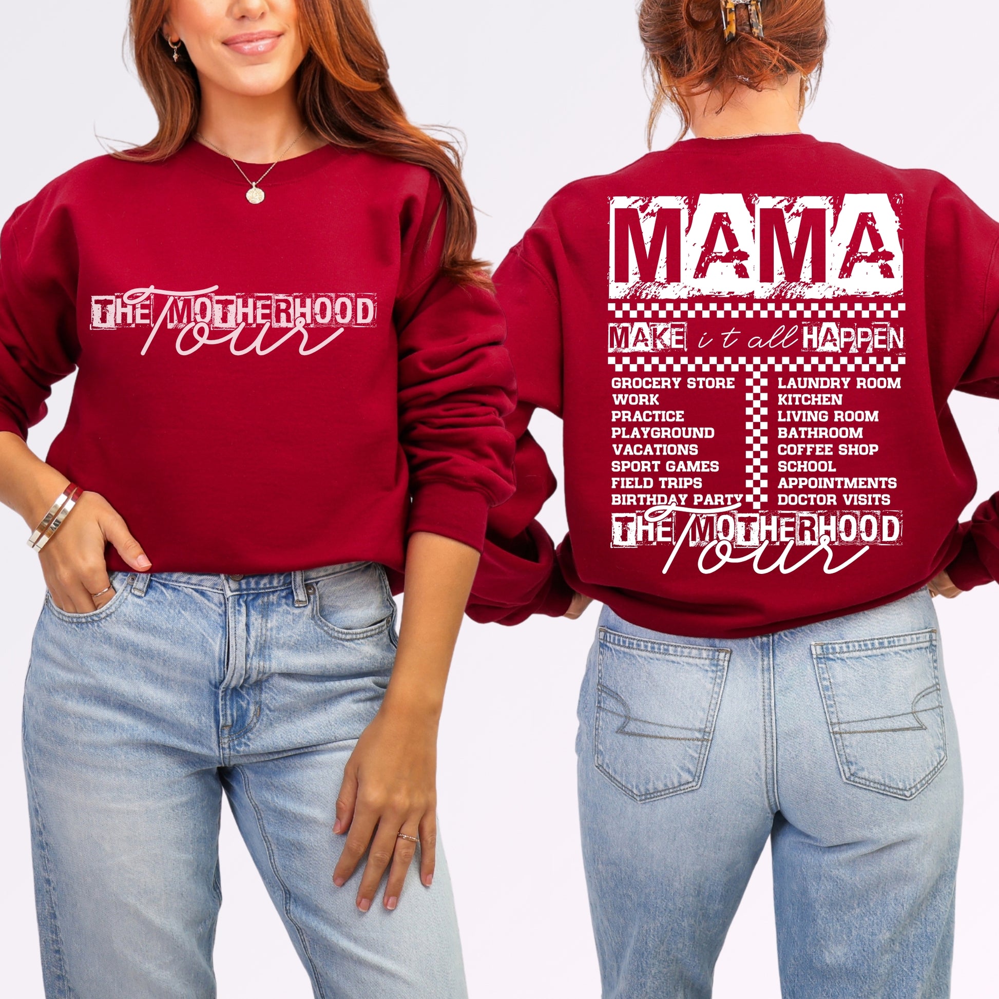 The Motherhood Tour Sweatshirt | Funny Front & Back Mom Life Crewneck