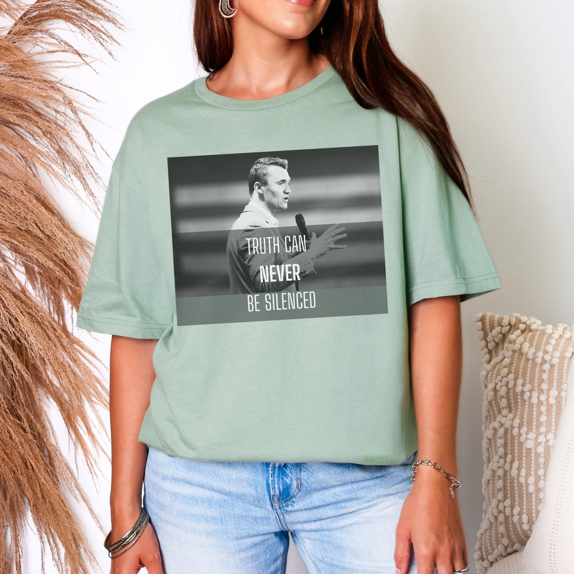 Truth can never be silenced. These words capture Charlie Kirk’s unwavering conviction: no matter the opposition, truth endures. The Truth Tee pairs his image with that powerful statement, making it clear that ideas rooted in faith, freedom, and courage will outlast every attempt to quiet them.